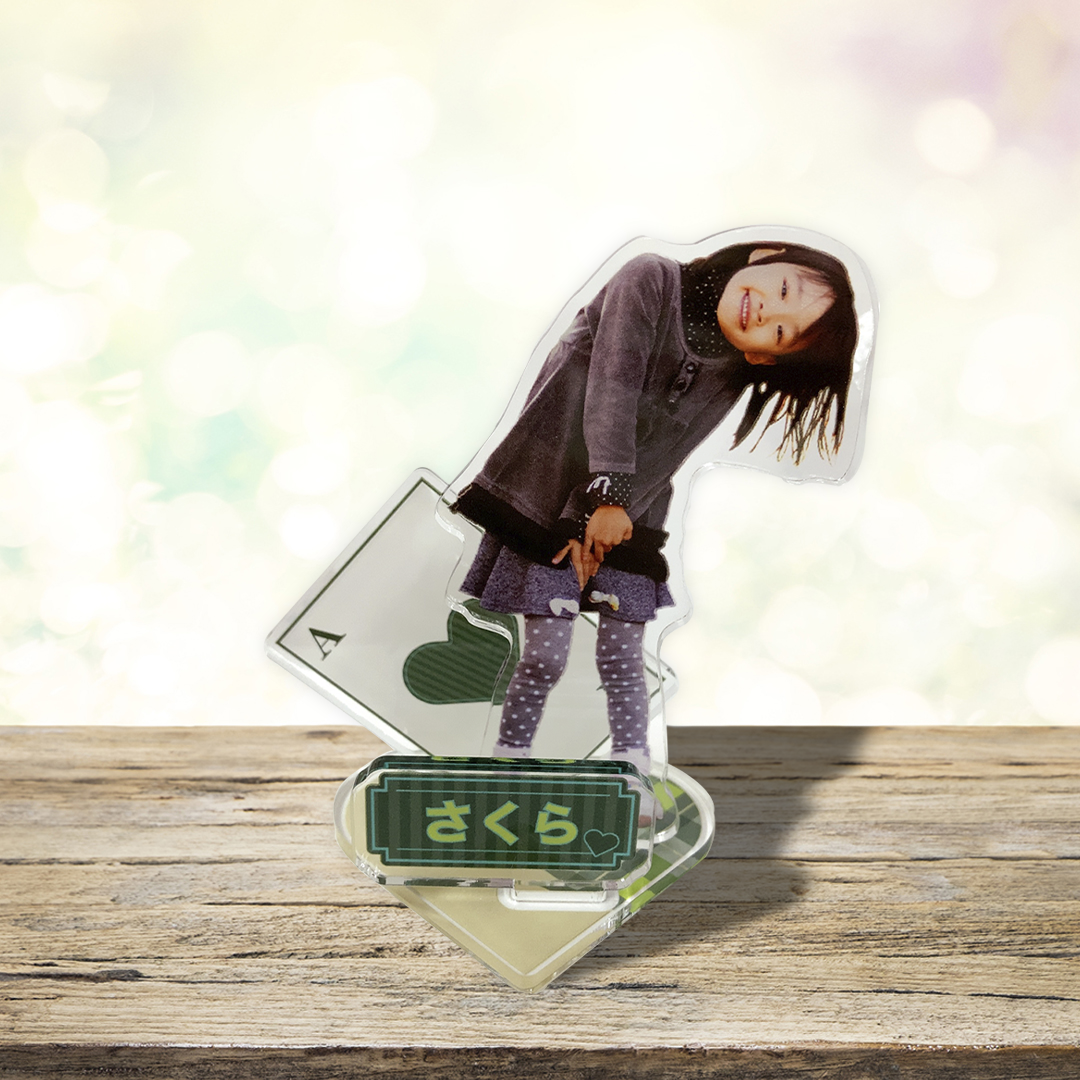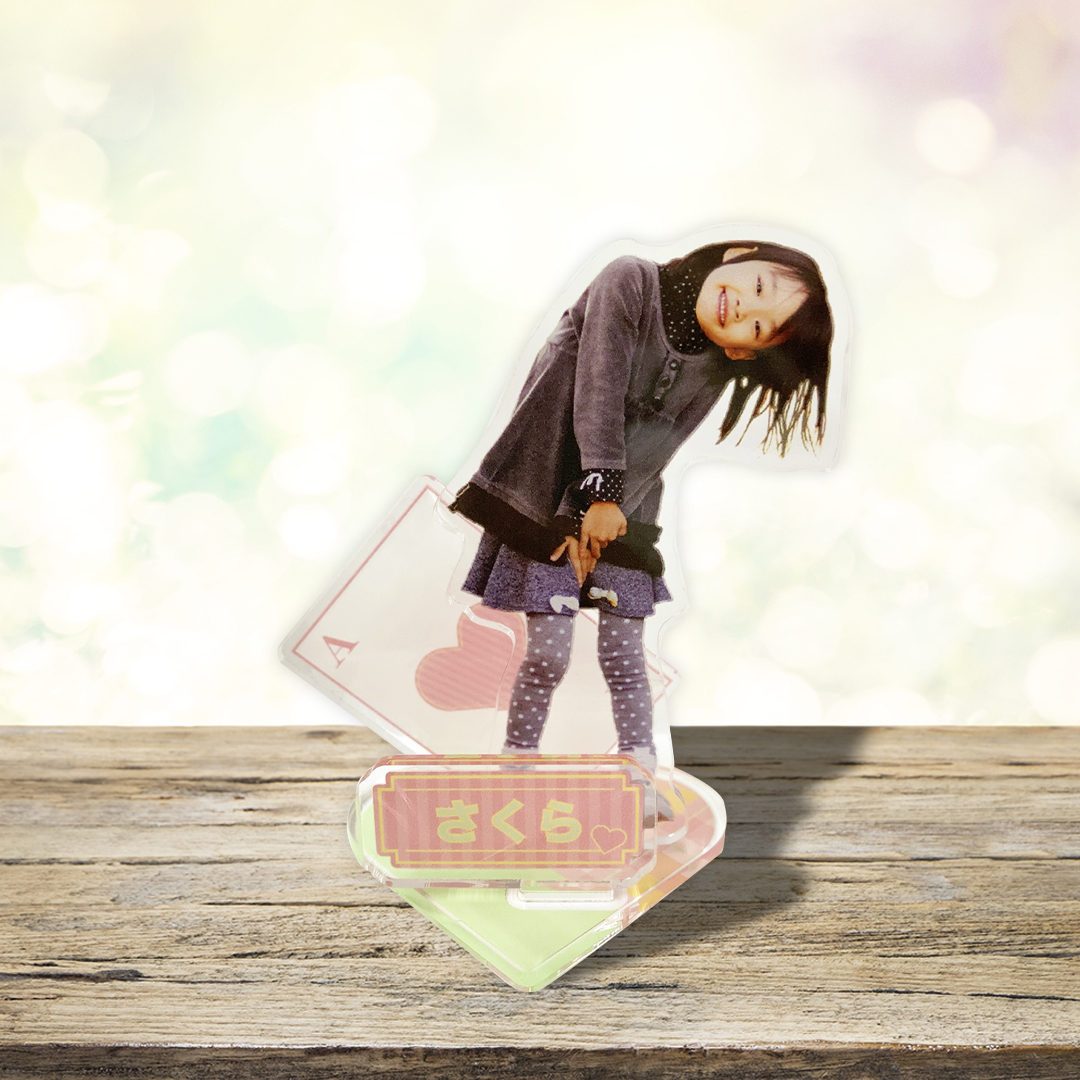もはやアクリルグッズはアニメのキャラクターや有名人だけのものではありません!スマホやパソコンから、アナタのお気に入りの一枚を当店にお送りください。たったそれだけで、世界に一つだけの特別なアクリルグッズが誕生いたします。